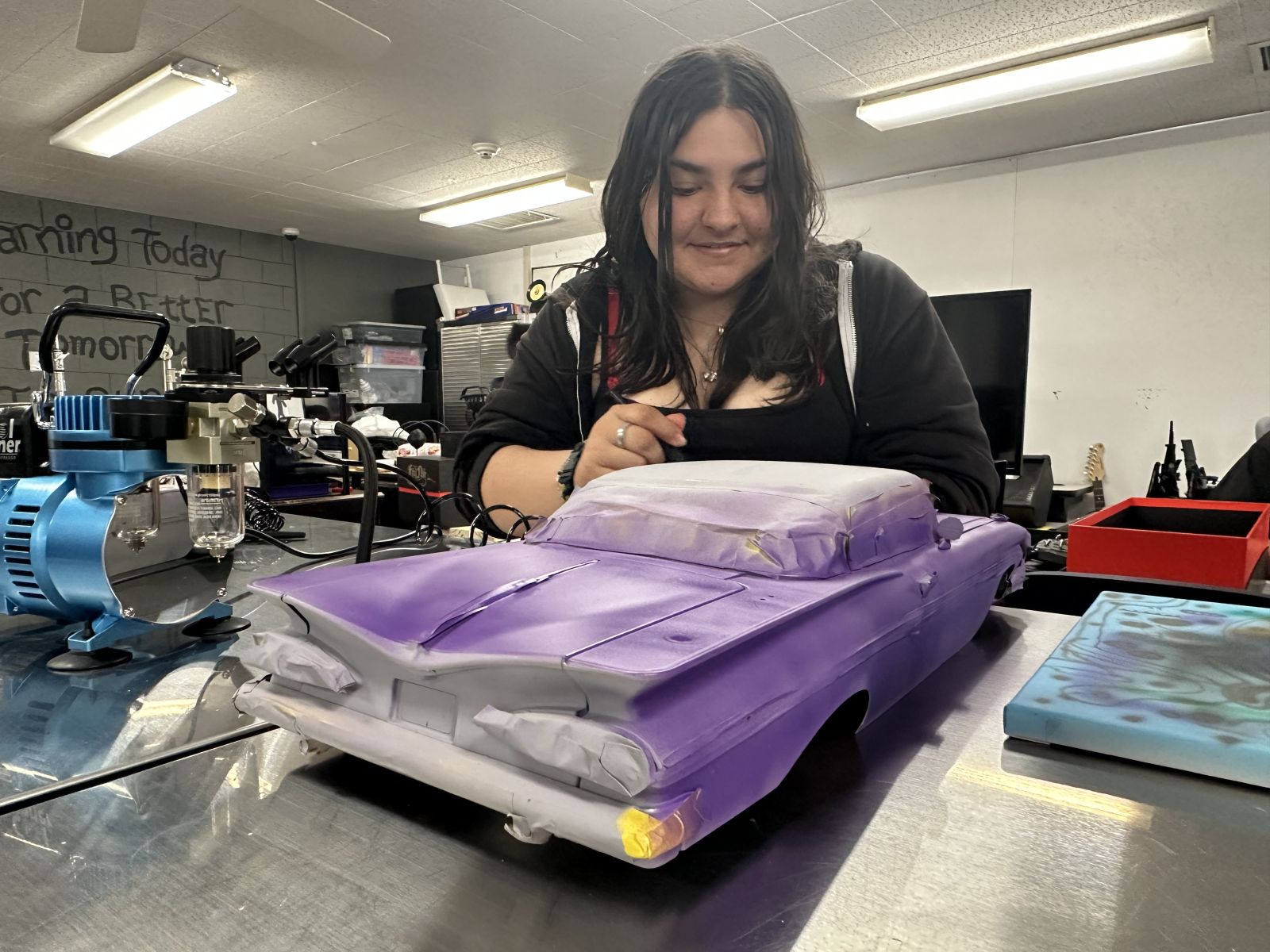 The Española Teen Center’s Lowrider Art Program has become a powerful outlet for youth creativity, skill-building, and cultural pride. Through hands-on projects, teens explore metalwork, airbrushing, fabrication, and design while connecting to the Valley’s rich lowrider heritage. Special thanks go to Enterprise Bank & Trust for sponsoring Cruzin 2 Success, a key component of this year's program in which youth designed and built 1/10-scale lowrider cars. This gave the youth practical experience in design and fabrication while expanding the program’s creative reach.